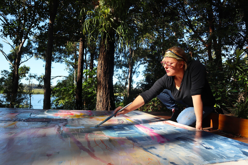 The images are a direct emotional response to the bush, beaches and mangroves that surround my home. My paintings explore unique ways of capturing the diversity of the natural terrain. I am interested in local flora, protected plant species, seaweeds and noxious plants. I often start my paintings with the small delicate details found in the bush and then depart to a place of frantic energy.